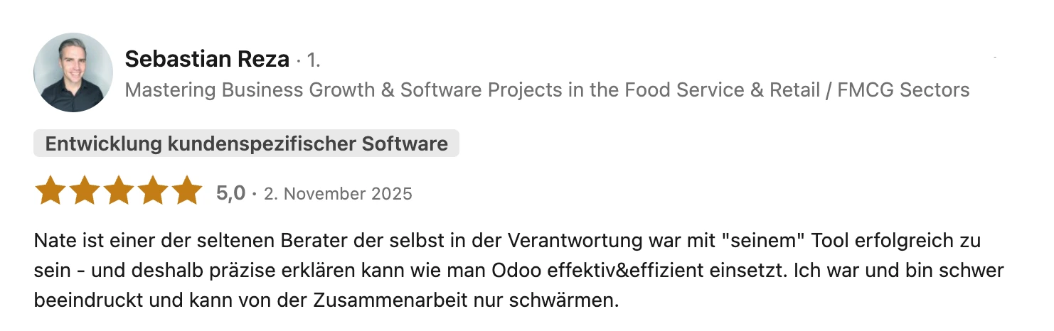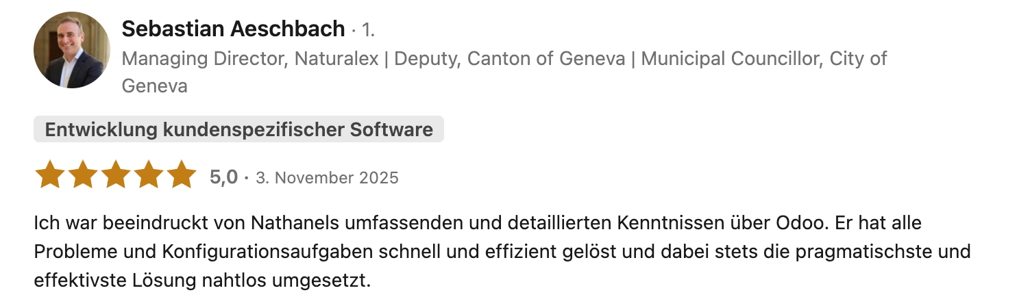 Entscheidend sind echte Referenzen und Branchenpraxis. Lasse dich nicht von Bildern oder Kundenmeinungen auf Partner-Websites täuschen. Recherchiere kritische Stimmen, lies unabhängige Bewertungen und führe zwei bis drei Referenzanrufe mit Kunden. Wähle einen Odoo Partner Schweiz der Verantwortung übernimmt, deine Prozesse versteht und klare Angebote macht. Auf dieser Seite zeige ich dir, wie du den passenden Partner auswählst.